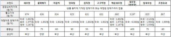 미국에서 한 봉지에 1802원에 판매되는 농심 새우깡은 출고가 674원으로 나타났다. 이를 국내 제품의 중량으로 환산하면 원가 비율은 73.5%이다. 양파링의 경우 출고가가 823원으로 원가율은 59% 정도였다.