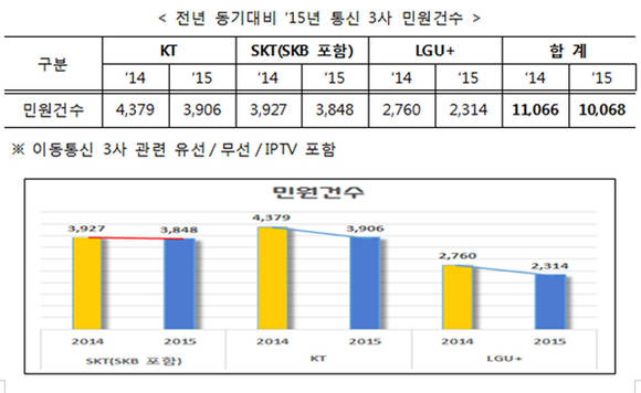 미래창조과학부(장관 최양희)는 정보통신방송서비스 분야 사업자 관련 민원 동향을 파악하고, 사업자들의 보다 적극적인 대국민 불편해소를 유도하기 위한 민원동향을 29일 발표했다.