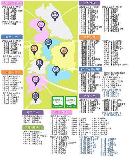 지리적표시는 농수산물 또는 농수산물가공품의 명성·품질, 그 밖의 특징이 본질적으로 특정 지역의 지리적 특성에 기인하는 경우 해당 농수산물 또는 농수산물가공품이 그 특정 지역에서 생산·제조 및 가공됐음을 나타내는 표시다.