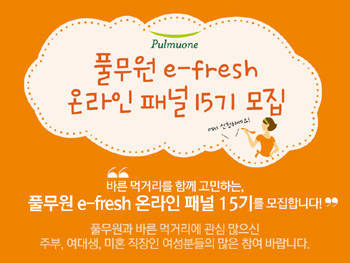 풀무원식품(대표 이효율)은 풀무원의 제품 개발과 기획에 다양한 의견을 개진할 온라인 패널 프로그램 ‘풀무원 e-fresh(이하 이프레쉬) 15기’를 모집한다고 8일 밝혔다.