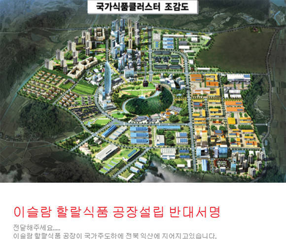 여기에 최근에는 익산에 추진 중인 할랄식품 테마파크의 건립을 반대하는 온라인 서명운동이 누리꾼들 사이에서 확산되고 있다.
