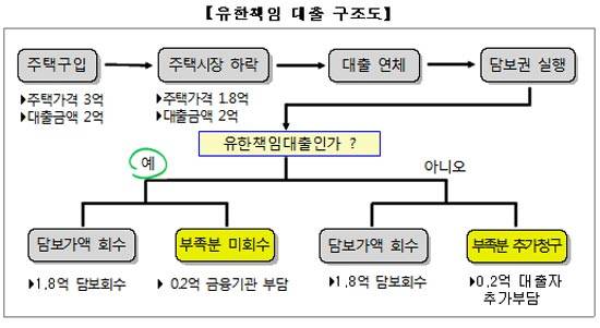 유한책임대출(비소구대출)은 기존 주택담보대출과 달리, 차입자의 상환책임이 담보물로 한정되는 대출이며, 기존 디딤돌대출에 일부 요건을 달리해 시범 도입된다.