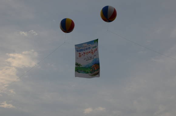 앙성온천관광협의회가 4일 충북 충주시 앙성면 일원에서 '제19회 앙성탄산온천 휴양대축제'를 개최한 가운데 어린이들이 물놀이테에어바운스에서 물놀이를 하고 있다.