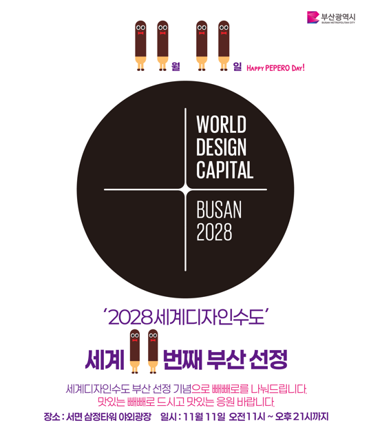 이번 행사는 세계디자인수도(WDC)가 무엇인지 시민이 쉽게 이해할 수 있도록 재미있게 전달하고, 일상에서 자연스럽게 세계디자인수도의 의미를 공감할 수 있도록 기획됐으며, 빼빼로데이라는 대중적 기념일과 부산이 11번째 세계디자인수도로 선정된 상징성을 결합해, 시민이 직접 참여하고 즐기는 체험형 홍보 캠페인을 진행한다.