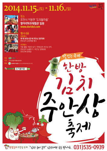 포천시는 오는 15일부터 16일까지 이틀간 이동면 도리돌마을에서 ‘한방김치 주안상 축제’ 개최된다고 7일 밝혔다.