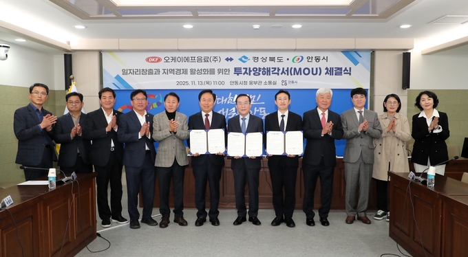 [뉴시니어 = 노태영 기자] 경북도(도지사 이철우)는 안동시와 13일 안동시청에서 글로벌 음료 제조 전문기업인 OKF음료와 음료 제조공장 증설을 위한 투자양해각서를 체결했다고 밝혔다.