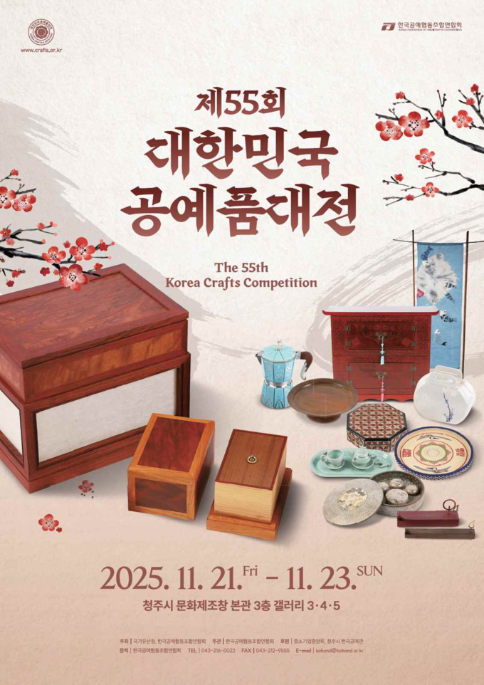 [뉴시니어 = 노태영 기자] 국가유산청(청장 허민)은 한국공예협동조합연합회(회장 소순주)와 함께 21일부터 23일까지 충북 청주시 문화제조창 갤러리 3·4·5관에서 제55회 대한민국공예품대전을 개최한다고 밝혔다.