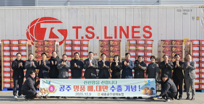 올해 수출량은 45톤으로, 지난해 22톤보다 두 배 이상 늘었으며, 세종공주원예농협은 컨테이너 적재를 위한 엄격한 공동 선별 과정을 거쳐 고품질 배만을 수출용으로 선정했다고 시는 설명했다.