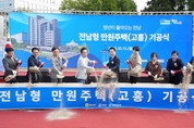 [뉴시니어 = 노태영 기자] 전남도(도지사 김영록)의 혁신적인 주거복지 정책인 전남형 만원주택 사업이 진도에 이어 고흥에서 두 번째 기공식을 갖고 본격적인 건설에 착수하는 등 순조롭게 추진되고 있다. 13일 도에 따르면 전남형 만원주택은 청년과 신혼부부가 보증금 없이 월 1만 원이라는 상징적인 임대료로 최장 10년간 거주할 수 있는 주거복지 정책으로, 인구 유출로 인한 지방 소멸 위기를 극복하고 청년층의 안정적인 지역 정착을 돕기 위해 전남도가 중점 추진중인 핵심 전략사업이다. 도는 이날 오후 고흥군 고흥읍 성산리 전남형 만원주택 사업부지에서 김영록 지사와 공영민 고흥군수, 류제동 고흥군의장, 송형곤·박선준 전남도의원, 청년, 신혼부부 대표, 고흥군민 등 200여 명이 참석한 가운데 전남형 만원주택(고흥) 기공식을 열고 본격적인 사업 추진에 들어갔다. 이번에 첫 삽을 뜬 전남형 만원주택(고흥)은 15층 1개 동, 총 50세대(청년 26세대, 신혼부부 24세대) 규모로 건설되며, 총 사업비 180억 원이 투입되며, 이중 도가 주택 건축비 150억 원을, 고흥군이 주차장 등 시설 조성에 30억 원을 분담한다. 특히 취미 생활과 출산 및 양육에 불편함이 없도록 주