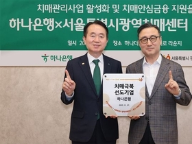 [뉴시니어 = 조성윤 기자] 하나은행이 최근 하나더넥스트 을지로 라운지에서 서울특별시광역치매센터와 '치매관리사업 활성화 및 시니어 맞춤 치매안심금융 지원을 위한 업무협약'을 체결했다. 하나은행의 금융 인프라와 서울특별시광역치매센터의 치매관리사업 노하우가 바탕이 된 이번 협약은 시니어를 위한 치매교육 및 인식개선과 치매 단계별 금융지원을 통해 치매 친화적 금융문화를 조성하기 위해 마련됐다. 이번 협약을 통해 양 기관은 ▲치매교육 및 인식개선 ▲치매환자 및 가족의 금융업무·자산관리 지원 ▲치매관련 업무 역량 강화 및 종사자 간 상호이해를 위한 교류 ▲치매 인식개선을 위한 협업 사업 발굴 등을 적극 추진할 계획이다. 특히, 하나은행과 서울특별시광역치매센터는 ▲기억친구 리더 양성과정 운영 ▲인지 건강·금융보호 프로그램 공동기획 ▲영업점·라운지 기반 치매안심 금융상담 ▲의료·복지기관 연계 캠페인 등 '시니어 맞춤 치매안심금융 서비스'를 단계적으로 확대할 예정이다. 이날 서울 중구 치매안심센터와 하나은행의 '치매극복선도기업' 지정을 기념하는 현판식도 함께 진행됐다. '치매극복선도기업'은 보건복지부 중앙치매센터가 치매에 대한 인식개선과 치매가정을 위한 안전망 구축에 힘쓴