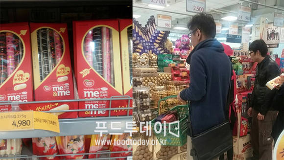 마트는 아예 막대과자류를 모아 빼빼로 데이 전용 매대를 세워뒀다. 막대과자류의 브랜드는 빼빼로를 판매하는 롯데제과부터 해태제과, 오리온, 크라운제과 등 제과업체와 소시지, 기타 초콜릿류까지 막대과자 대열에 합류했다.