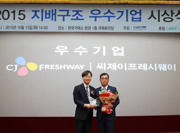 CJ프레시웨이는 한국기업지배구조원에서 발표한 ‘2015년 ESG 평가’에서 통합 A등급을 받아 지배구조 우수기업으로 선정됐다. 식자재유통 및 단체급식 관련 기업이 지배구조 우수기업 시상식에 참여한 것은 CJ프레시웨이가 처음이다.