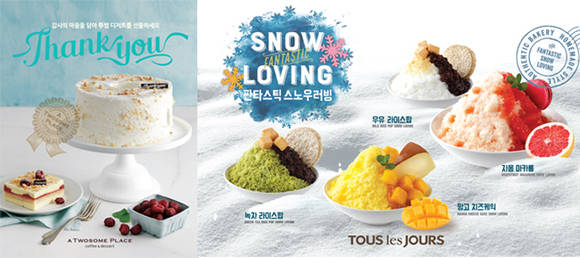 뚜레쥬르는 우유얼음에서 나아가 녹차얼음∙망고얼음∙자몽얼음 등으로 재료 맛을 살렸다. 치즈 케이크와 마카롱 같은 대표 디저트와 인절미, 쌀과자 등의 한국적인 토핑도 가미했다.