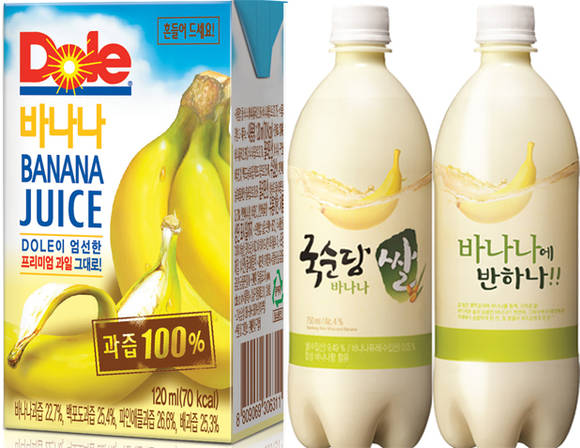 주류업계에서도 바나나를 이용한 제품들이 쏟아지고있다. 막걸리 업체 국순당은 지난달 초 바나나 퓨레와 바나나 향을 첨가해 만든 '쌀바나나'를 출시했다. ‘바나나 막걸리’로 불리고 있는 이 제품은 출시 3주 만에 100만병 판매를 돌파하며 젊은 여성들 사이에서 인기를 끌고 있다. 금복주도 바나나맛 칵테일 소주 ‘순한참 모히또 바나나’를 내놓고 소비자의 반응을 살피고 있다.