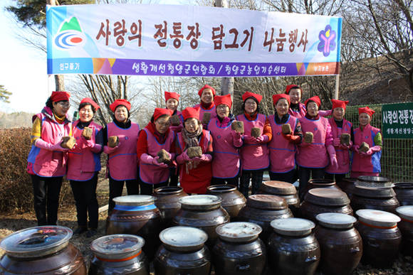 생활개선청양군연합회(회장 강영남)는 지난 24일 군 농업기술센터에서 회원 등 20여명이 참여한 가운데 ‘사랑의 전통 장 담그기’ 행사를 가졌다.
