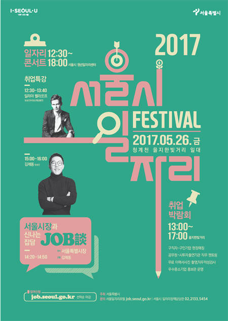 [문화투데이 = 금교영기자] 서울시(시장 박원순)는 오는 26일 장교동 서울시 청년일자리센터와 인근 을지한빛거리에서 ‘2017 서울시 일자리 페스티벌’을 개최한다.