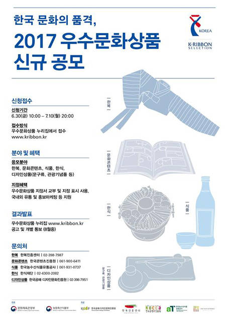 [문화투데이 = 금교영기자] 문화체육관광부(이하 문체부)와 농림축산식품부(이하 농식품부)는 ‘2017 우수문화상품’ 지정 공모를 실시한다.