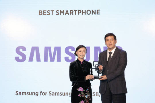 삼성전자의 스마트폰 갤럭시S8 시리즈가 중국 상하이에서 열린 모바일월드콩그레스 상하이 2017에서 ‘최고의 스마트폰’ 상을 받았다.