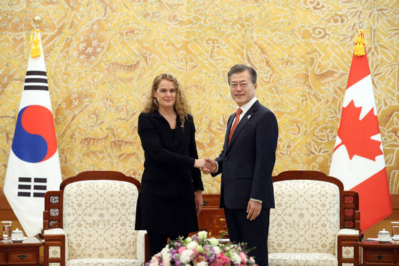 문재인 대통령과 줄리 파이예트 캐나다 총독이 양국 간 '전략적 동반자 관계'를 지속적으로 발전시켜 나가기로 했다.