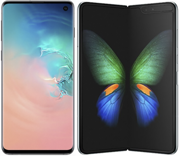 삼성전자 최초 폴더블폰의 이름은 '갤럭시 폴드'다. 7.3형 인피니티 플렉스 디스플레이(Infinity Flex Display)를 탑재했다. 접었을 때는 4.6형의 커버 디스플레이로 기존 스마트폰보다 작은 사이즈로 스마트폰을 사용할 수 있다. 한 손으로 동작할 수 있을 만큼의 사이즈다.