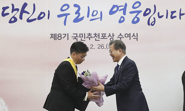 행정안전부는 26일 이 소장 등 국민추천포상 수상자 42명과 가족들을 초정해 청와대에서 수여식을 열었다.