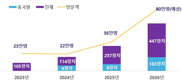 올해 부산항에는 총 447항차의 크루즈선이 입항할 예정이며, 방문객은 약 80만 명에 이를 것으로 전망되며, 중국발 크루즈 입항 확대가 예상되면서 관광 수요 증가에 대한 기대감도 커지고 있다.