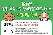 [뉴시니어 = 노태영 기자] 경기도 수원특례시(시장 이재준)는 돌봄 취약가구의 반려동물 양육 부담을 덜고 동물복지를 강화하기 위해 2026년 돌봄 취약가구 반려동물 의료서비스 지원사업을 추진한다고 23일 밝혔다. 지원 대상은 시에 주민등록을 두고 실제 거주하며 본인 명의로 반려동물을 등록해 기르는 기준중위소득 85% 이하 가구로 저소득층, 중증장애인, 한부모가정, 다문화가정, 1인가구 등이 포함되며, 경기도 공공입양기관에서 국가봉사동물을 입양한 경우는 소득과 관계없이 지원한다. 보호자 1명당 2마리까지 신청할 수 있고, 동일 동물은 의료·돌봄·장례 지원 또는 노령동물 종합건강검진 중 한 가지 항목만 선택해 지원한다. 의료·돌봄·장례 지원은 마리당 최대 16만 원(초과비용 자부담), 노령동물 종합건강검진은 최대 32만 원(초과비용 자부담)까지 지원하며, 노령동물 검진은 2019년 12월 31일 이전 출생한 반려동물에 한한다. 의료지원에는 백신접종, 중성화수술, 기본검진·치료비 등이 포함되고, 돌봄 위탁비와 장묘 서비스도 지원하는데 노령 반려동물은 종합건강검진을 받을 수 있으며 모든 서비스는 관내 업체를 이용해야 한다. 신청 기간은 3월 3일부터 11월 30일까