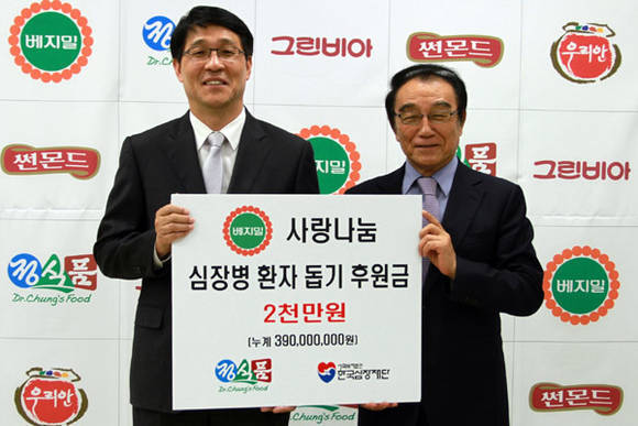 정식품(대표 손헌수)은 한국심장재단에 심장병 환자를 돕기 위한 '사랑나눔' 후원금을 전달했다고 15일 밝혔다.