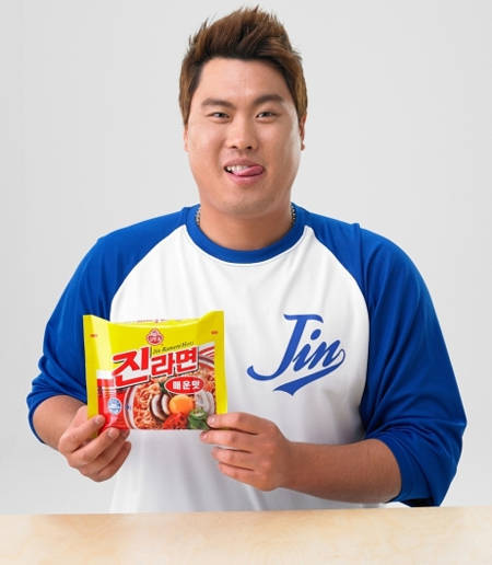 오뚜기는 진라면 모델로 메이저리거 LA 다저스 류현진 선수를 기용해 그라운드의 진지한 류현진 모습을 시작으로 '나를 채우는 건 진한 응원 그리고' 라는 영상 뒤에 류현진이 진라면을 폭풍 흡입하며 보여준 먹방 광고를 보여주며 소비자들의 큰 호응을 얻었다.