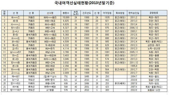 해수부 자료에 따르면 1000톤 이상의 대형 여객선 17척 모두가 화객선(RORO CARGO-PASSENGER SHIP) 이었다.