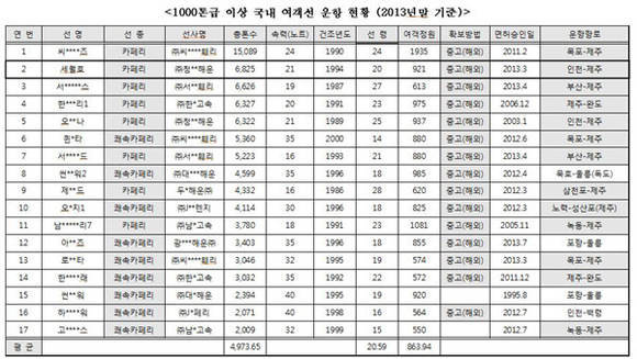김 의원은 또 1000톤급 이상의 대형 여객선의 선종은 모두 화객선이란 점도 문제로 지적했다.