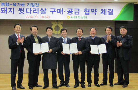 농협과 CJ 제일제당은 19일 한돈(국내산 돼지고기) 뒷다리 부위의 수급 불균형 해소와 육가공 원료육 수급안정을 위해 '원료육 구매․공급 공동협약(MOU)'을 체결했다.