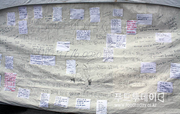 전남 진도 앞바다 세월호 침몰 5일째인 20일 진도군 임회면 팽목항 현장에 세월호 실종자 무사귀환을 기원하는 메시지가 붙어 있다.