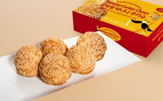 감숙왕 바나나 쿠키슈는 바삭한 쿠키 크러스트 속에 감숙왕으로 만든 달콤한 바나나 크림을 가득 채워 겉은 바삭하고 속은 촉촉한 식감을 구현해 낸 프리미엄 디저트다. 냉동 보관 제품으로 차갑게 먹으면 아이스크림처럼 시원하고 밀도 있는 식감을 느낄 수 있으며, 상온에서 해동하여 먹을 경우 부드럽고 크리미한 맛이 느껴지는 등 취향에 따라 선택해서 즐길 수 있다.