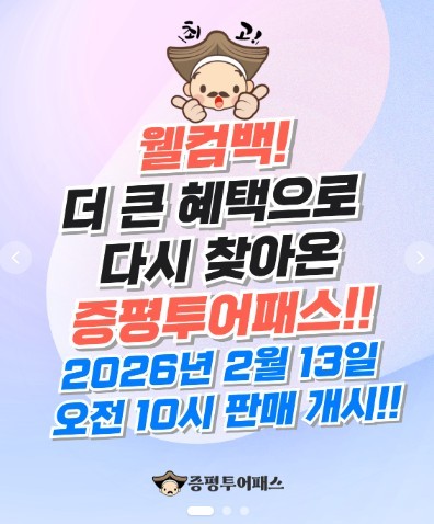 [뉴시니어 = 노태영 기자] 충북 증평군(군수 이재영)이 설 연휴를 앞두고 통합 관광상품인 증평투어패스 판매를 13일부터 재개한다고 밝혔다.