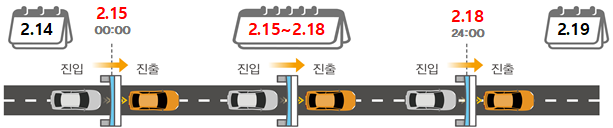 국토부는 이날 제5회 국무회의에서 “설 연휴 기간 전국 고속도로의 통행료를 면제하는 안건이 통과했다.”며 통행료 면제 기간 및 대상은 15일 00시부터 18일 24시까지 잠시라도 고속도로를 이용하는 모든 차량에 적용된다고 설명했다.