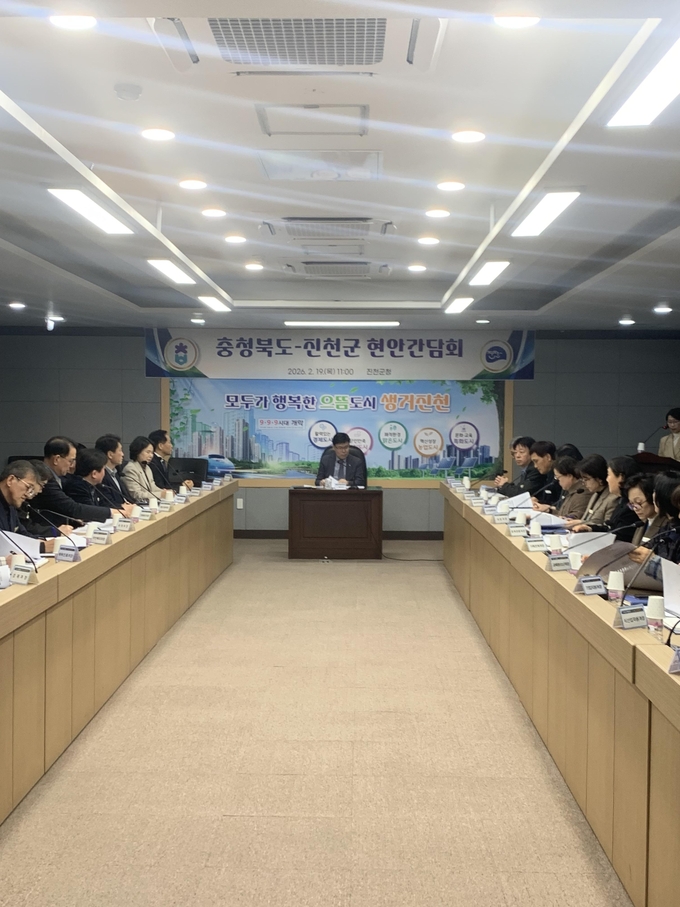 이날 간담회는 이동옥 도 행정부지사가 주재했고, 전도성 진천군수 권한대행을 비롯한 간부공무원 등이 참석했으며, 진천군 건의사항을 청취한 뒤 공모사업 이행 철저, 신속집행 적극 추진, 각종 화재 등 재난사고 예방 등에 대해 논의했다.