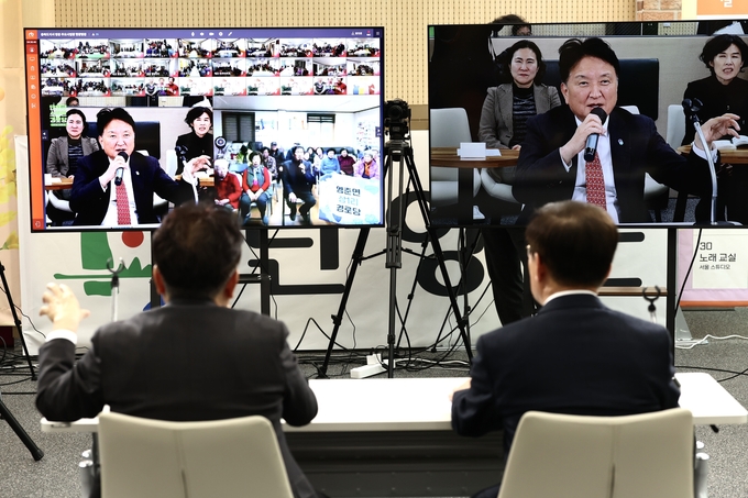 이어 단양군 청소년수련관으로 이동해 스마트경로당 사업 프로그램을 참관한 뒤, 관내 20개 경로당과 화상 연결을 통해 영상간담회를 진행했으며, 간담회에서는 스마트경로당 운영 현황과 프로그램 진행 상황을 점검하고, 어르신들이 경로당에서 다양한 교육·여가 프로그램에 참여하는 모습을 확인하는 등 화상 시스템을 활용한 실시간 소통 방식과 운영 전반을 살폈다.