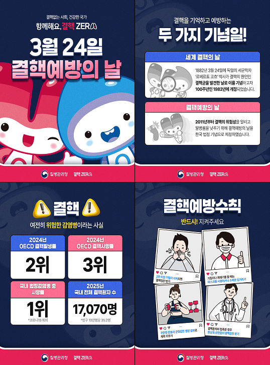 임승관 청장은 “결핵 감소세에도 불구하고 여전히 OECD 국가 중 발생률 2위, 사망률 3위 수준”이라며 “특히 65세 이상 고령층은 매년 1회 정기 검진을 통해 조기 발견이 중요하다”고 강조하며 “국민 참여와 현장 대응이 결핵 퇴치의 핵심”이라며 지속적인 예방과 관리 강화를 당부했다.